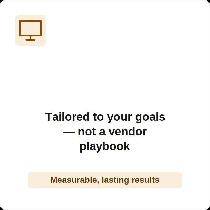 Not sure what you need yet? That’s exactly what the strategy call is for. We’ll assess your environment, identify your biggest opportunities, and recommend a scope that makes sense — with no obligation to proceed.